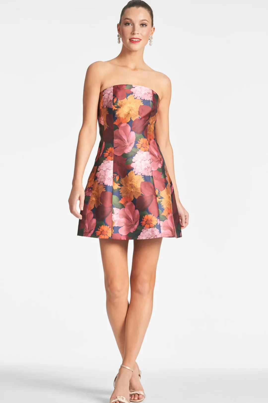 She is a sculpture articulated in bella bouquet! This ultimate little dress in bella bouquet is engineered to keep her perfect bell shape. Boning at the bodice is what allows her to defy gravity. Embroidered flowers kiss the top of the dress disappearing into the bodice. We spent many hours on this frock to make sure she is exactly what you see on the site.