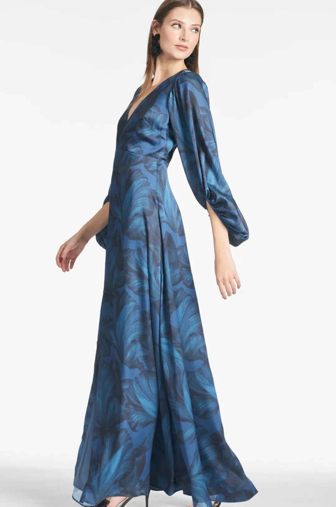 Jenny in Tonal Petal is a gown that knows who she is: elegant, understated, and sophisticated. Featured in satin crepe, the empire waist falls to a perfect A-line while the collapsed crescent sleeves add a subtle yet unique element to the gown’s overall design.