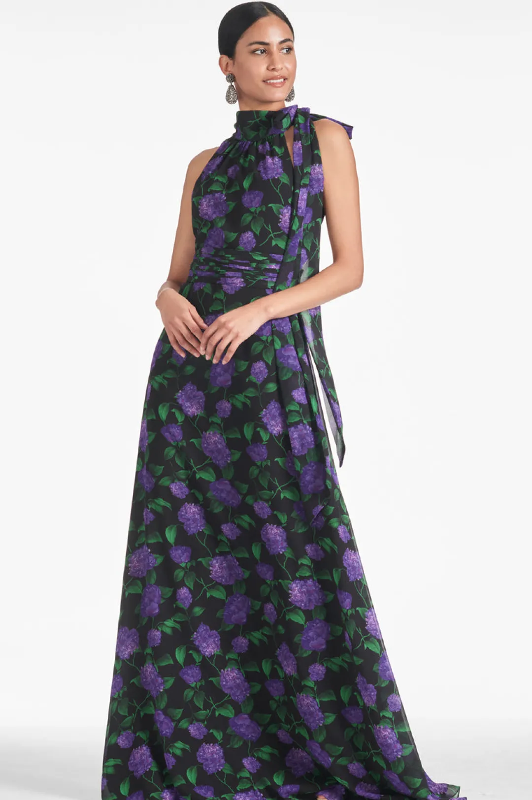 Kayla in Violet Garden is simple yet romantic. She’s an elegant maxi dress with a self-tie at the neckline and a stitched-on pleated waistband that hits at the true waist for the most flattering shape. We design all of our dresses in the Essential Social collection with the intention that they can be enjoyed again and again. A timeless dress should be worn often and well.