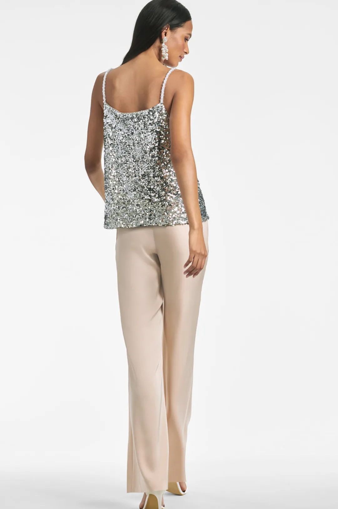All tanks aren’t created equal… Leta is in our all-over stretch sequin has a cowl neckline and pearl straps making her the perfect pairing to our Talisa skirt. However, a top like this can’t be contained and will beg to be worn back to your favorite denim or chic charmeuse.