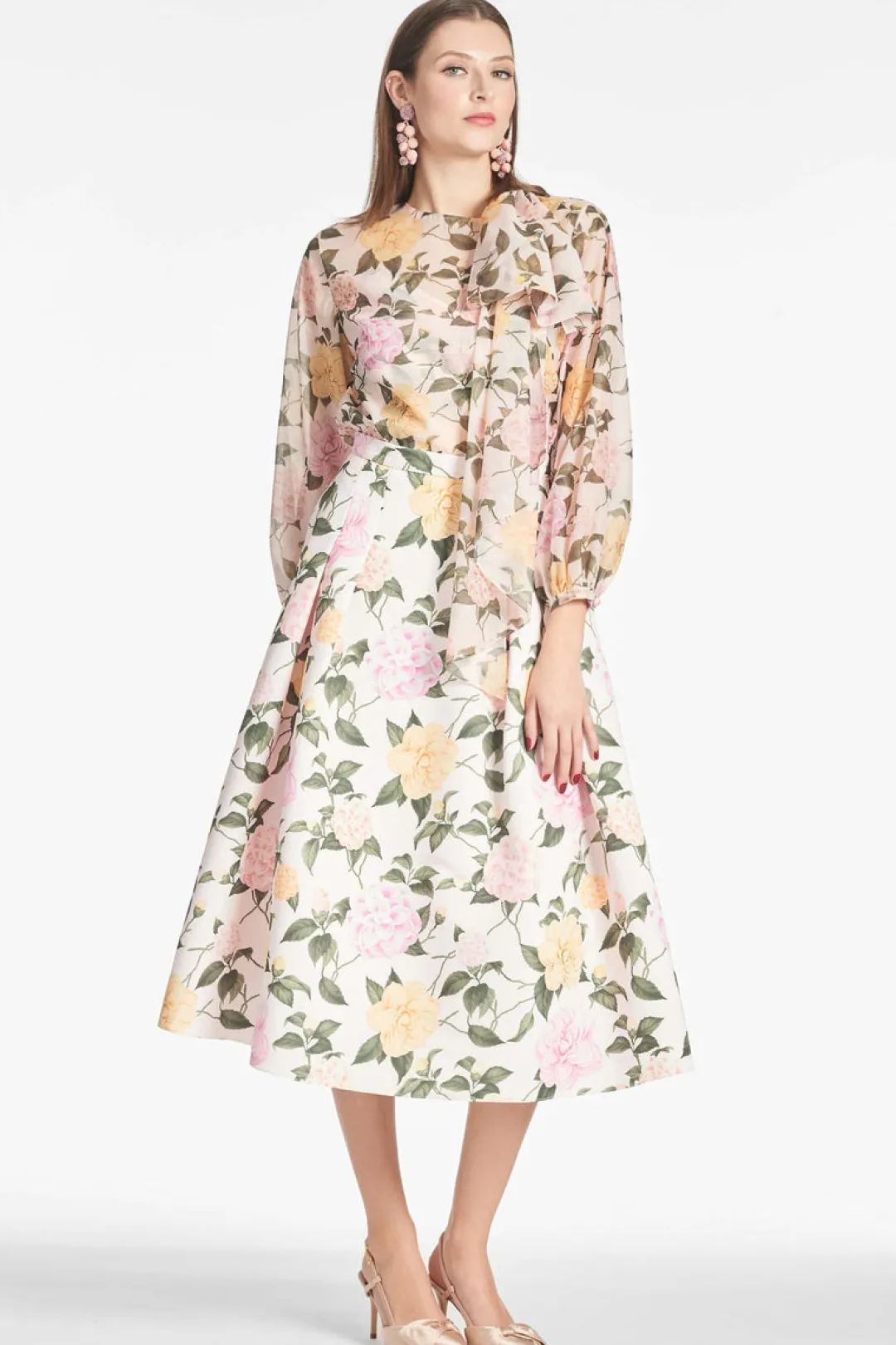Introducing the Lydia Skirt in Pink Lemonade Bouquet – a luxurious piece inspired by our iconic Leighton skirt. Crafted from Mikado fabric in our new standout pink and yellow bloom print, it pairs beautifully with the complementary Astor Top or Lexie Top.