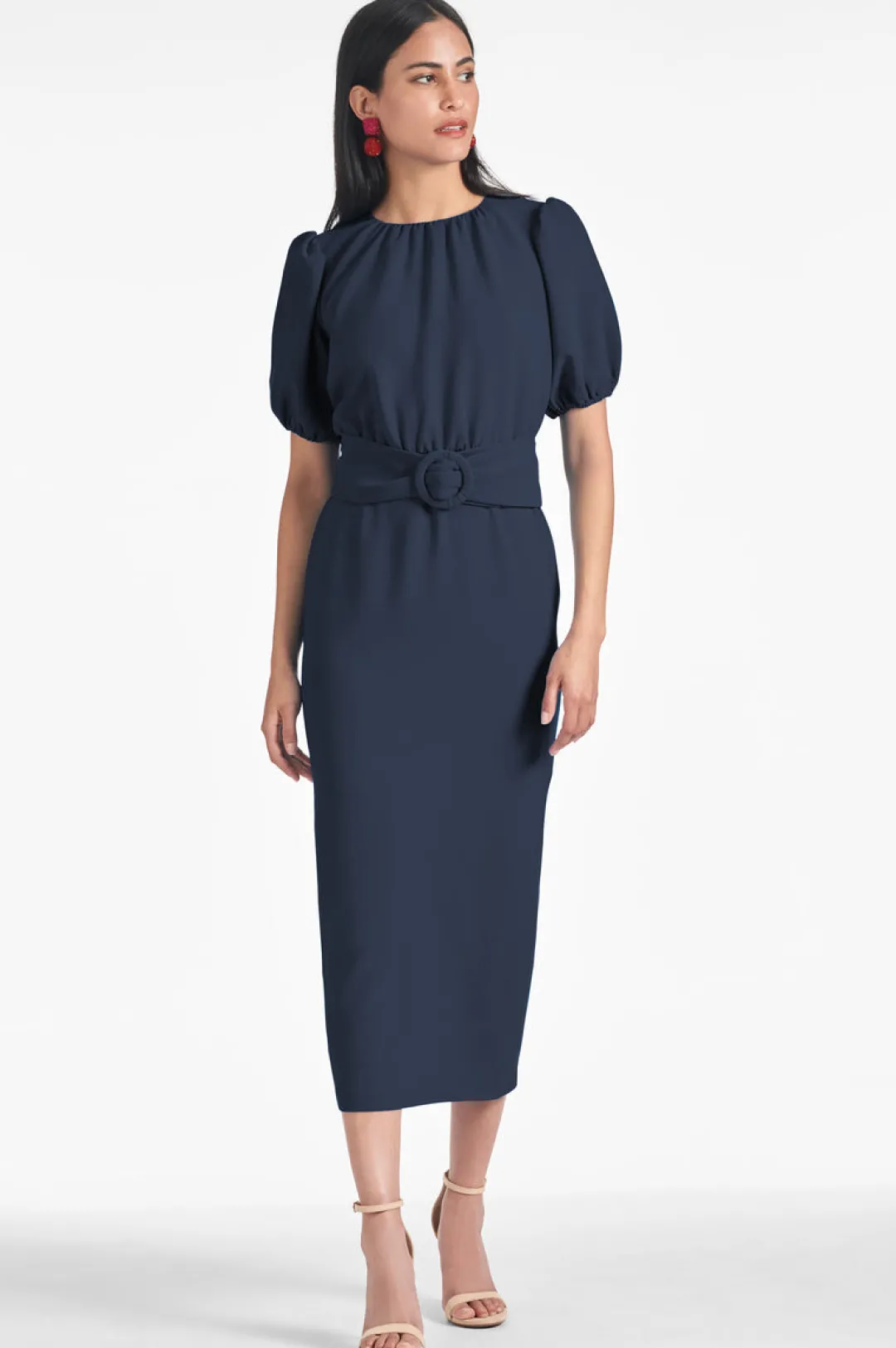 Featuring a fitted bodice, puff sleeve, and an added belt, this dress is tailored to hug your curves and flatter any figure. The Dark Midnight color lends a clean finish to the classic look.