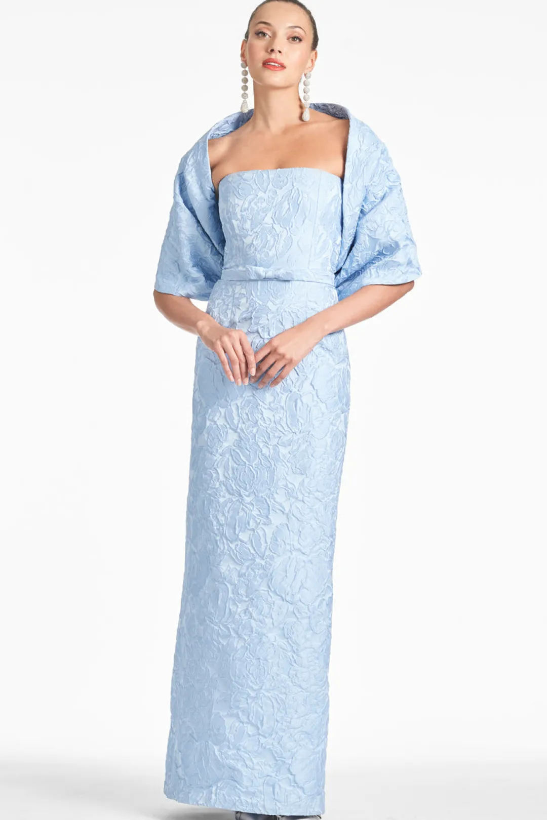 Sophia is here to steal the show. Crafted from jacquard relief fabric in the most flattering strapless silhouette, this gown is a no brainer for your next event.