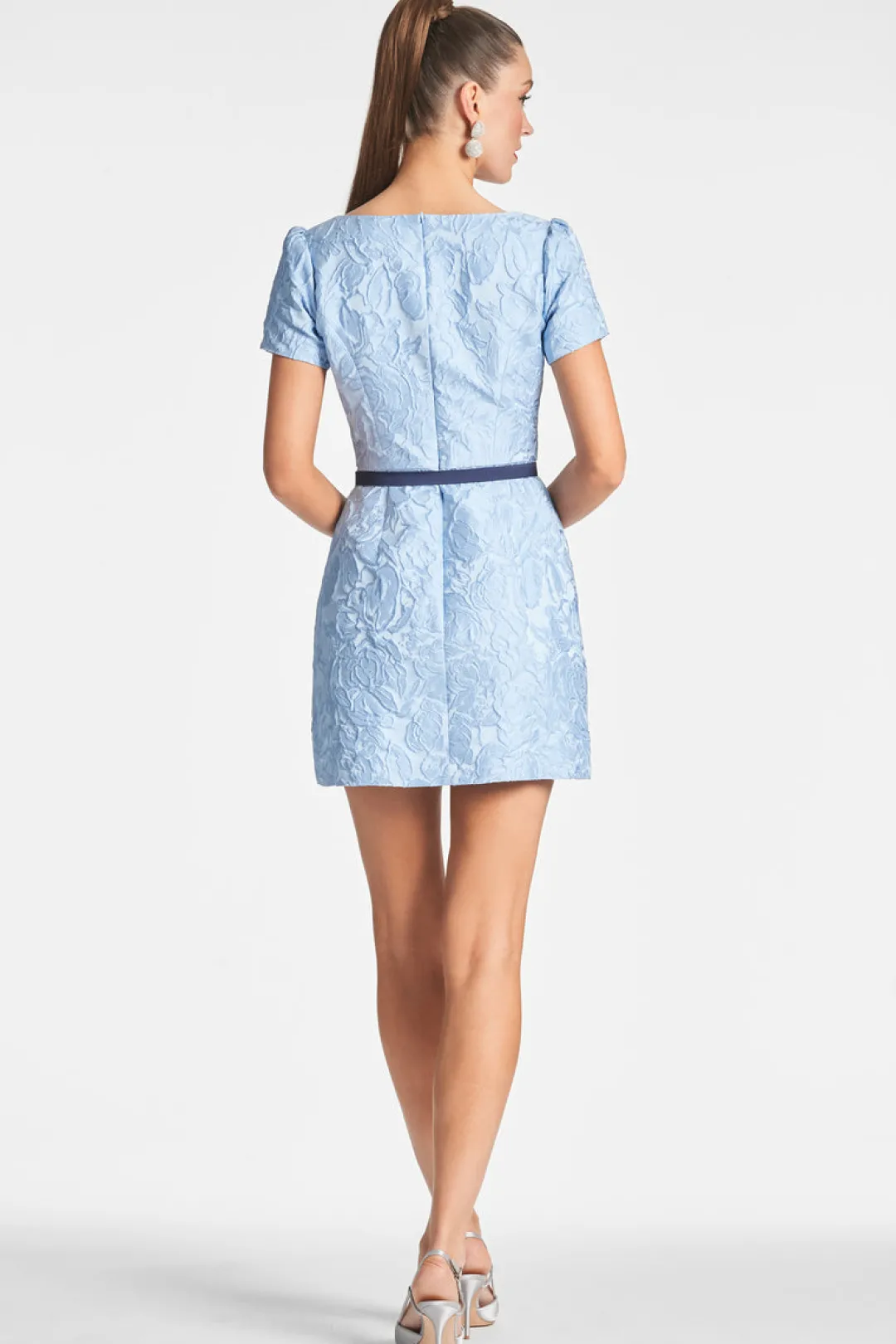 Terri is the perfect something blue, for brides or otherwise. She’s made of jacquard relief and features a scoop neckline with an A-line skirt. She’s flirty, she’s flattering, and she’s the mini you’ll always reach for.