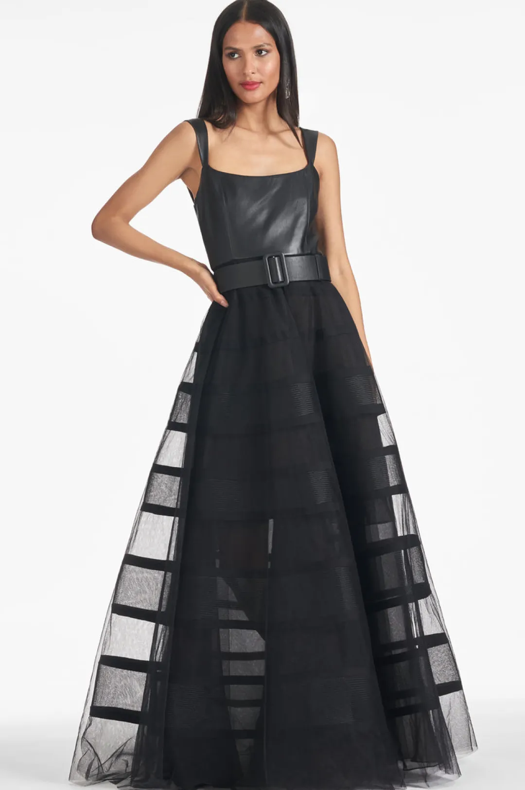 Achieve full-on glamour with the Veruca Gown! This stunning ball gown will flatter your silhouette and draw attention with its bold, faux leather fabrication. Perfect when you want to stand out at any event, this statement piece is sure to make your look fun, flirty and unforgettable!