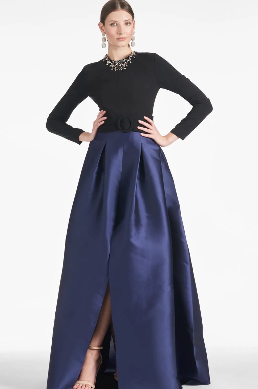 The Victoria Gown will make you feel and look your best while shining in subtle sparkles. The bodice is made from stretch crepe allowing for a comfortable yet close fit that flatters, the neckline is lit with smokey crystals, acting as a collar necklace. This classic ball gown is the perfect choice for a winter wedding; the timeless design will make you shine all night. Make this gown the perfect companion for your special occasion.