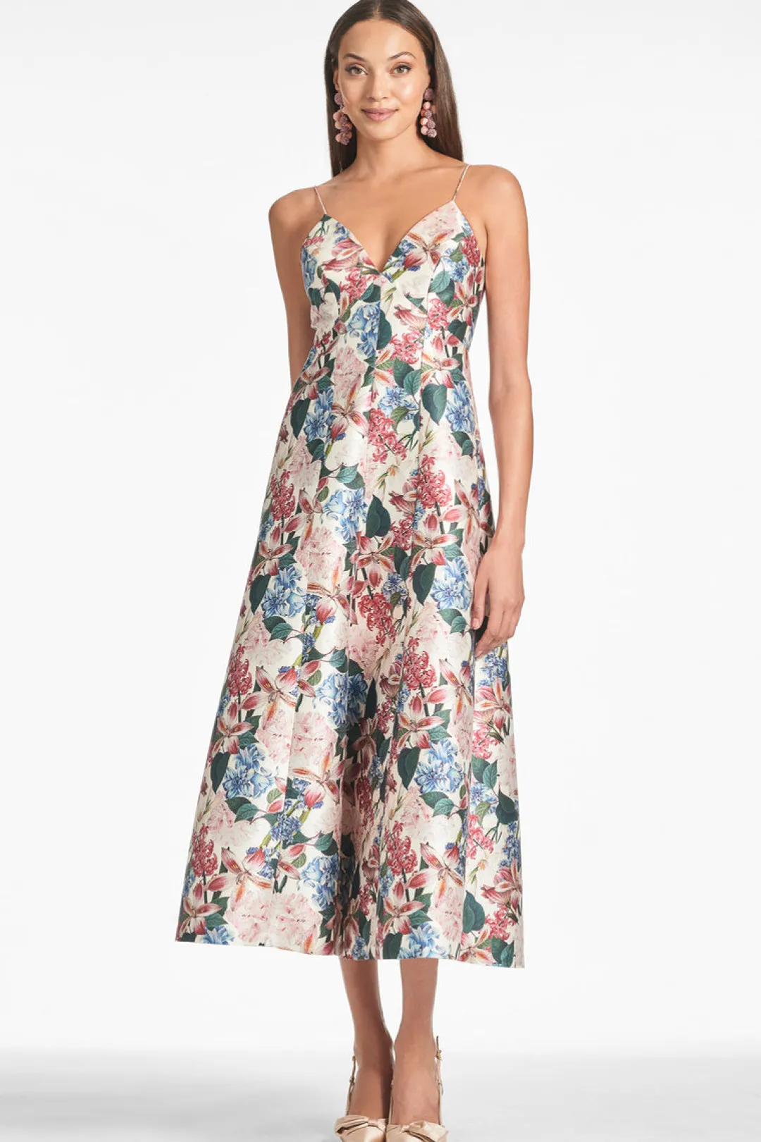 Meet Allesandra: feminine, flirty, and simply fabulous. This fit-and-flare midi dress is made in our signature Stretch Mikado fabric for the most flattering fit. The allover print, Antico Botonico, adds the perfect touch of romance to the already sophisticated silhouette.