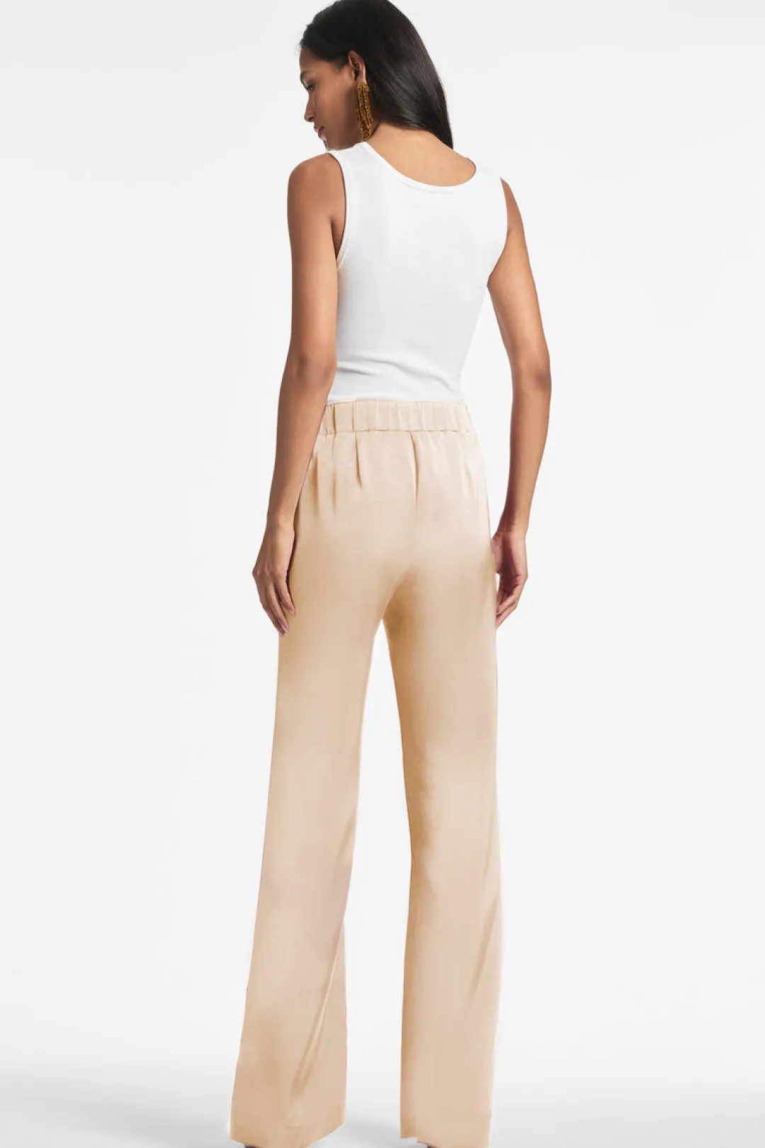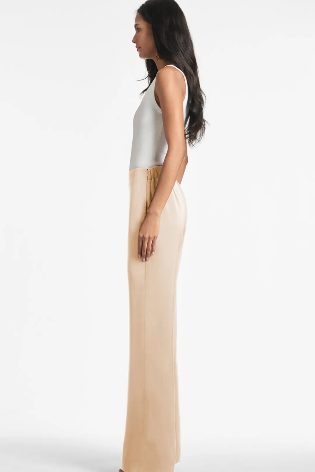 Alli is the ideal evening pant. An easy, chic wide-leg trouser shape is featured in our satin crepe for an amazing drape. The flat front pant has concealed elastic at the back for a more comfortable fit. Perfect back to your favorite “date-night” tops or and knits.