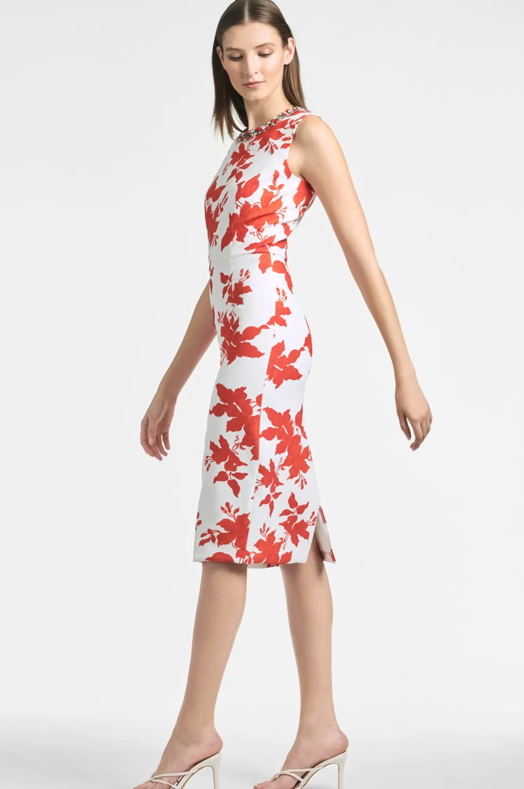 From Palm Beach to the Vineyard, our Anna Dress is perfect for your next special occasion. Crafted from stretch crepe fabric, this sheath dress features an ornate crewneck collar adorned with faceted crystals and turquoise embroidery. Look and feel amazing in this stunning show-stopper.