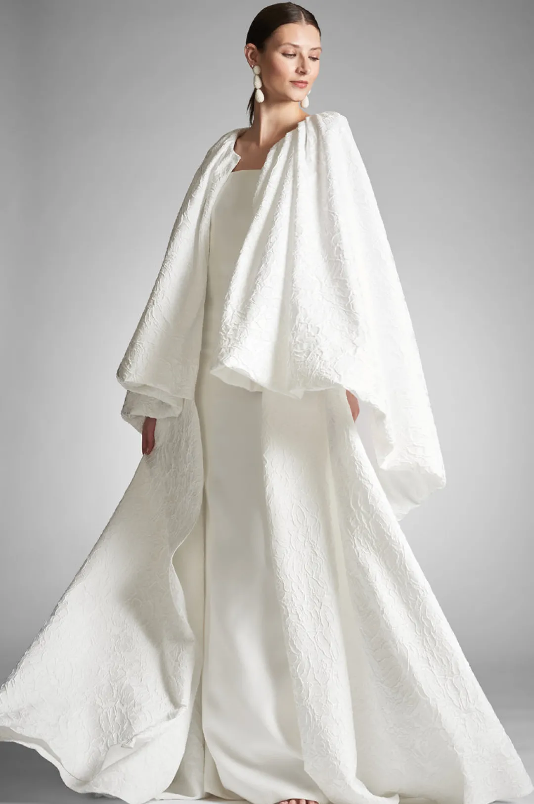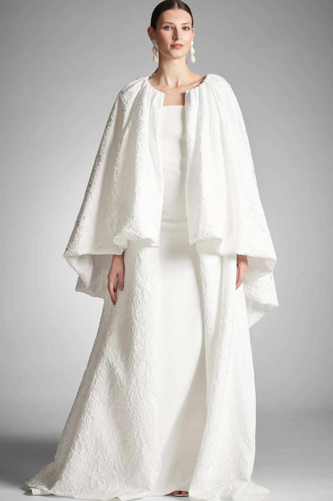 Wrap yourself in elegance on your special day with the Aura Coat. The striking ivory and beautiful cloque fabric will make you feel like royalty. Perfect for winter weddings, this coat will be the perfect addition to wear over your wedding gown on your big day.