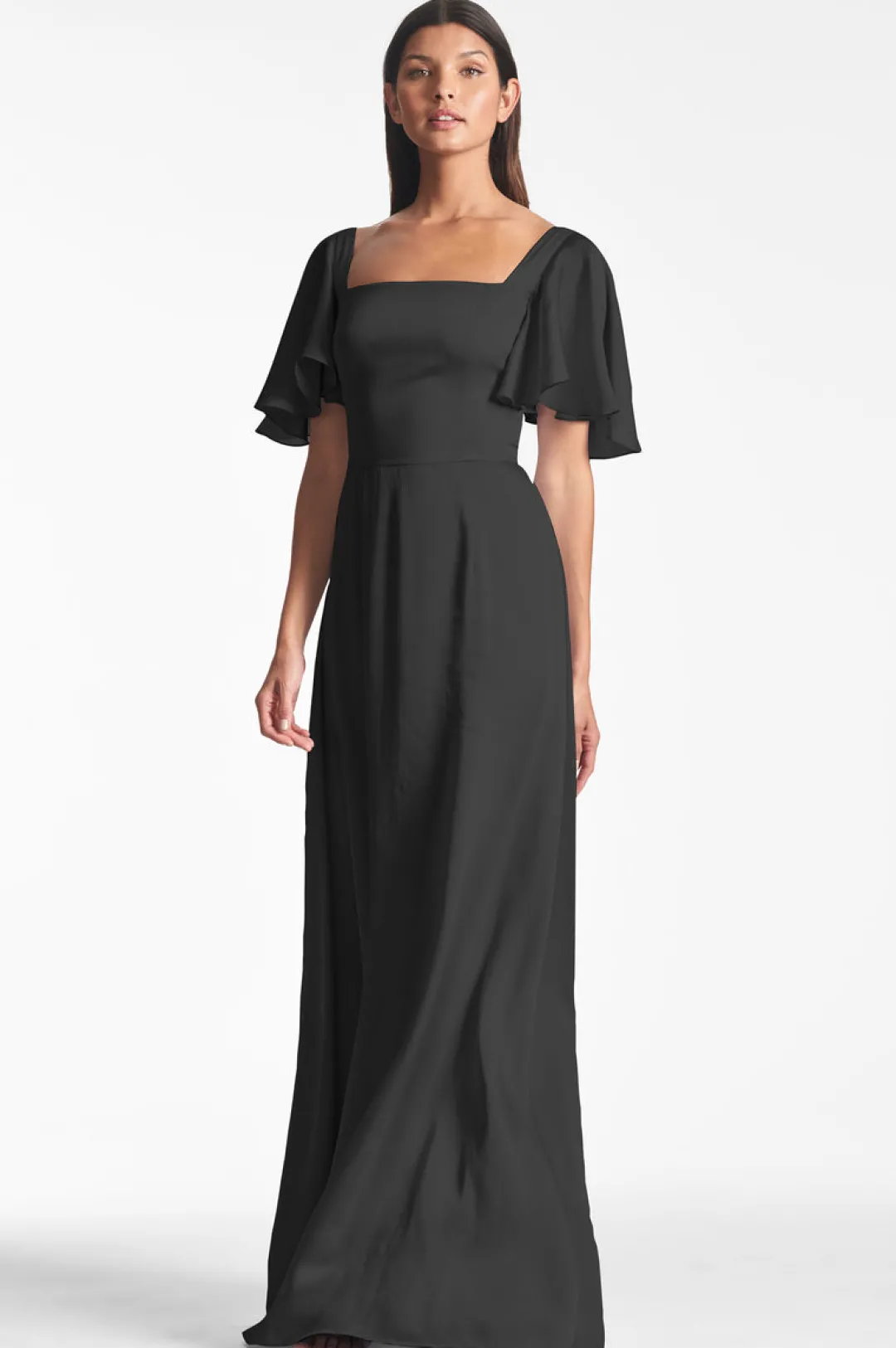 The Aurora Gown, part of our Essential Social collection, is the perfect choice for wedding guests and bridesmaids alike. The flattering silhouette and flutter sleeves offer a classic, timeless look.