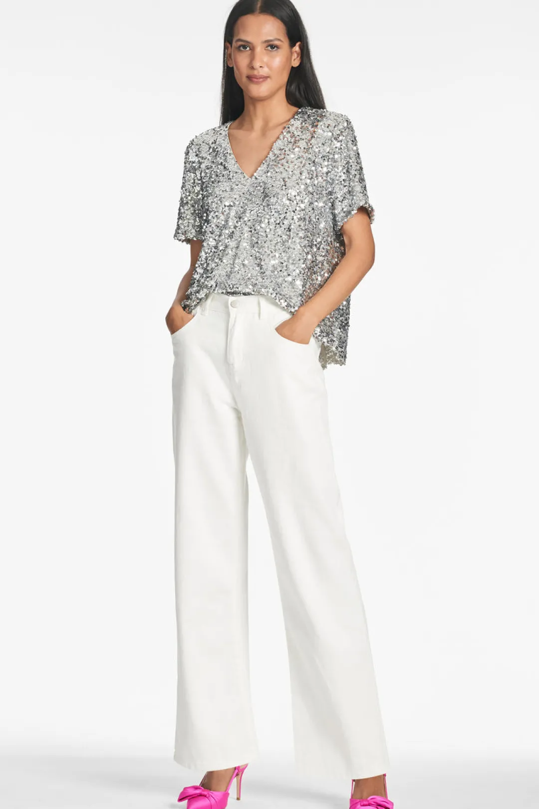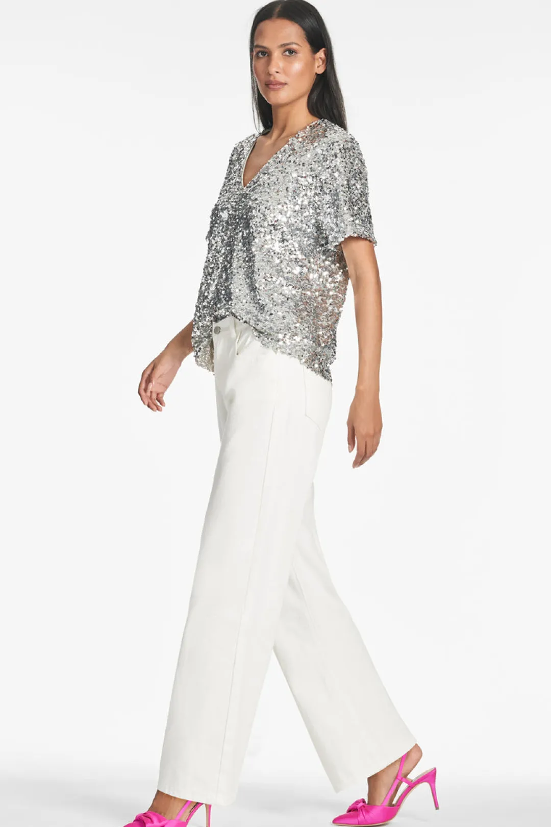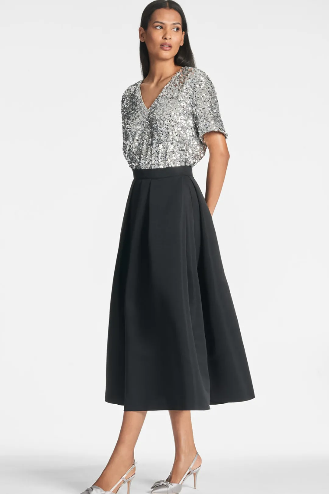 Bette is the perennial party top that every closet needs. Featuring a boxier silhouette of scatter sequins that drape beautifully on the body, she’s as versatile as she is fun. Pair this back to the Leighton skirt for a formal festive look, or throw on some blue jeans to add some sparkle to an otherwise casual ensemble.