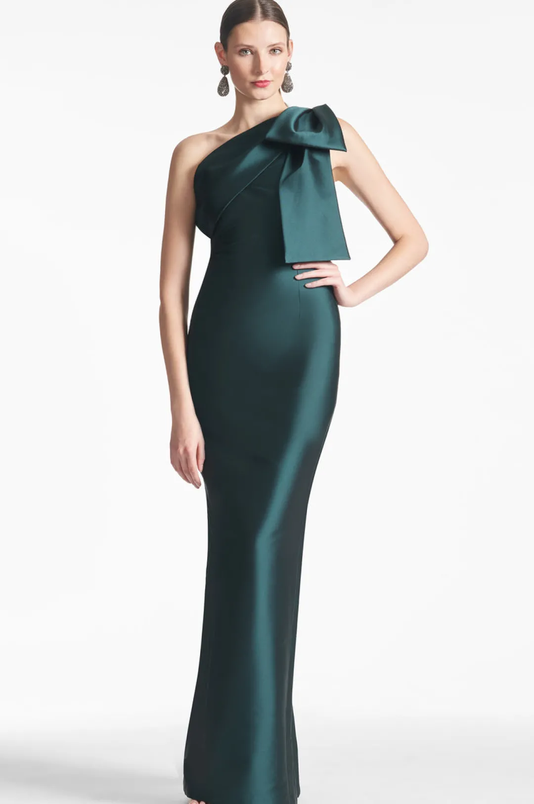 The Bonnie column dress features a sleek sleeve of double-face stretch Mikado with an asymmetric one-shoulder and elegant bow at the shoulder. This modern silhouette is sure to make a statement at any event. Crafted with an eye for detail, you can expect long-lasting quality and timeless style from this piece.