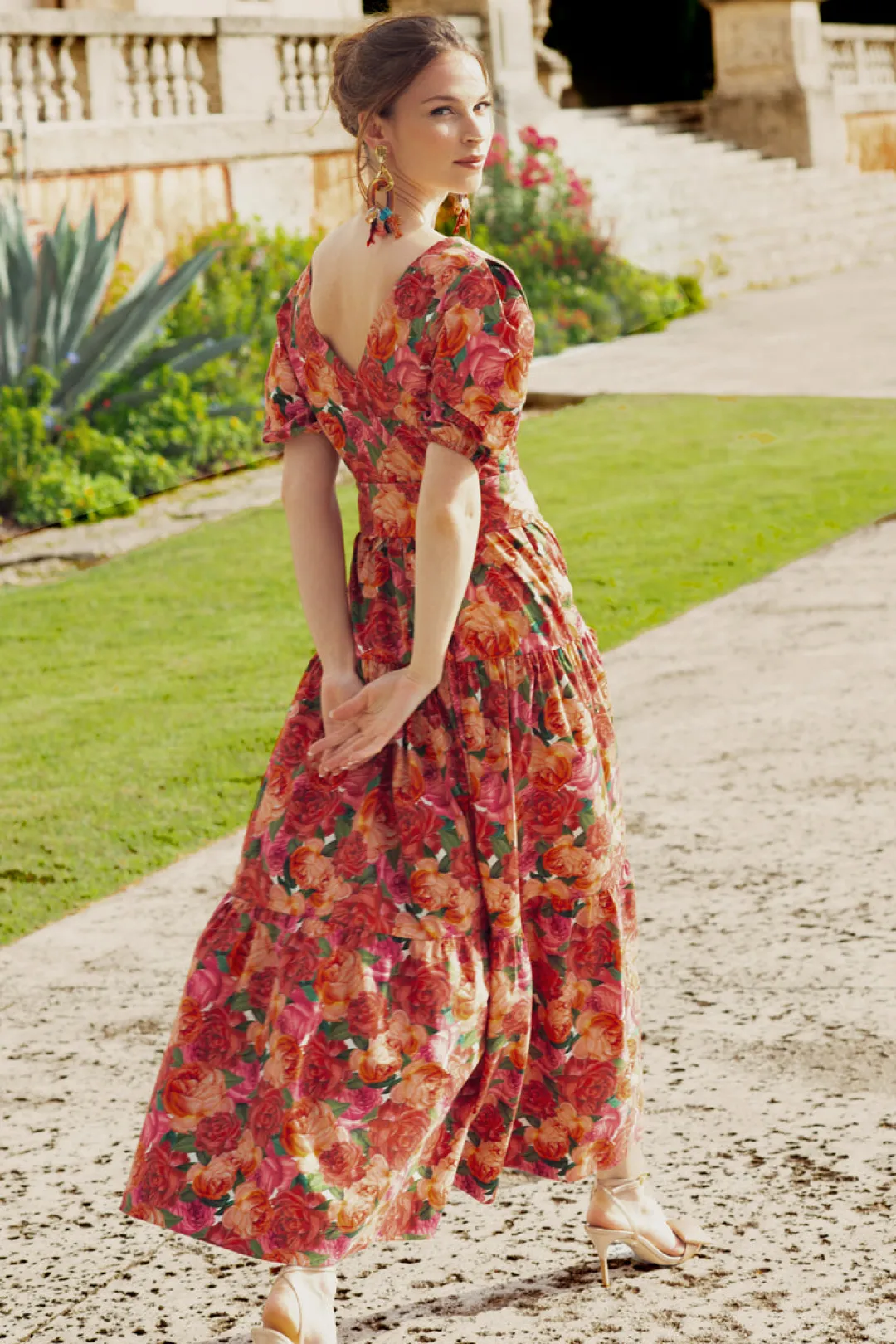 Carina is the midi that every woman’s closet needs. She’s made of breathable stretch cotton and comes with a matching raffia-accented belt to flatter in all the right places. The allover rose print makes her the perfect frock for your next summer soiree or warm weather vacation.