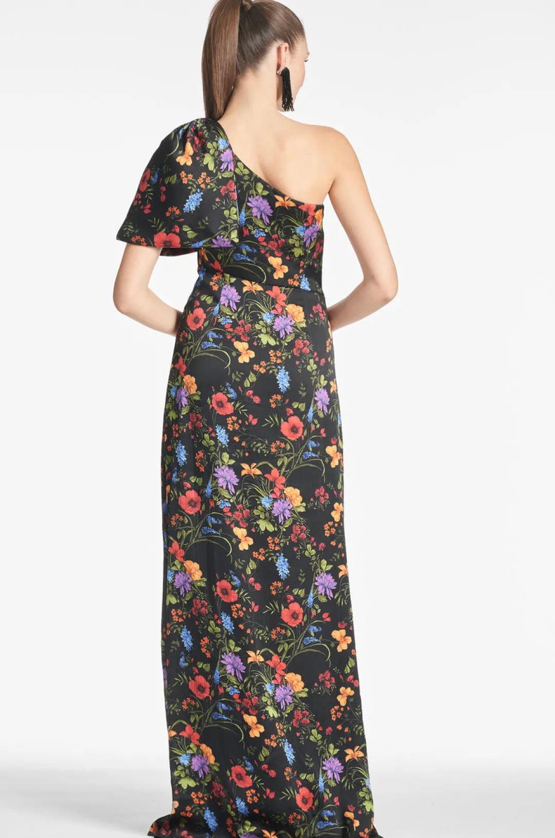 The Chelsea gown in our Noir Wildflower print is an example of balance by design. A sleek sleeve of crinkle georgette is cut on the bias with an asymmetric seam at the waist, creating a column for curves. At the shoulder sits a hand-tucked, stitched-on collapsed bow. We design all of our Essential Social dresses with the intention that they can be enjoyed again and again. After all, a beautiful dress should be worn often and well.