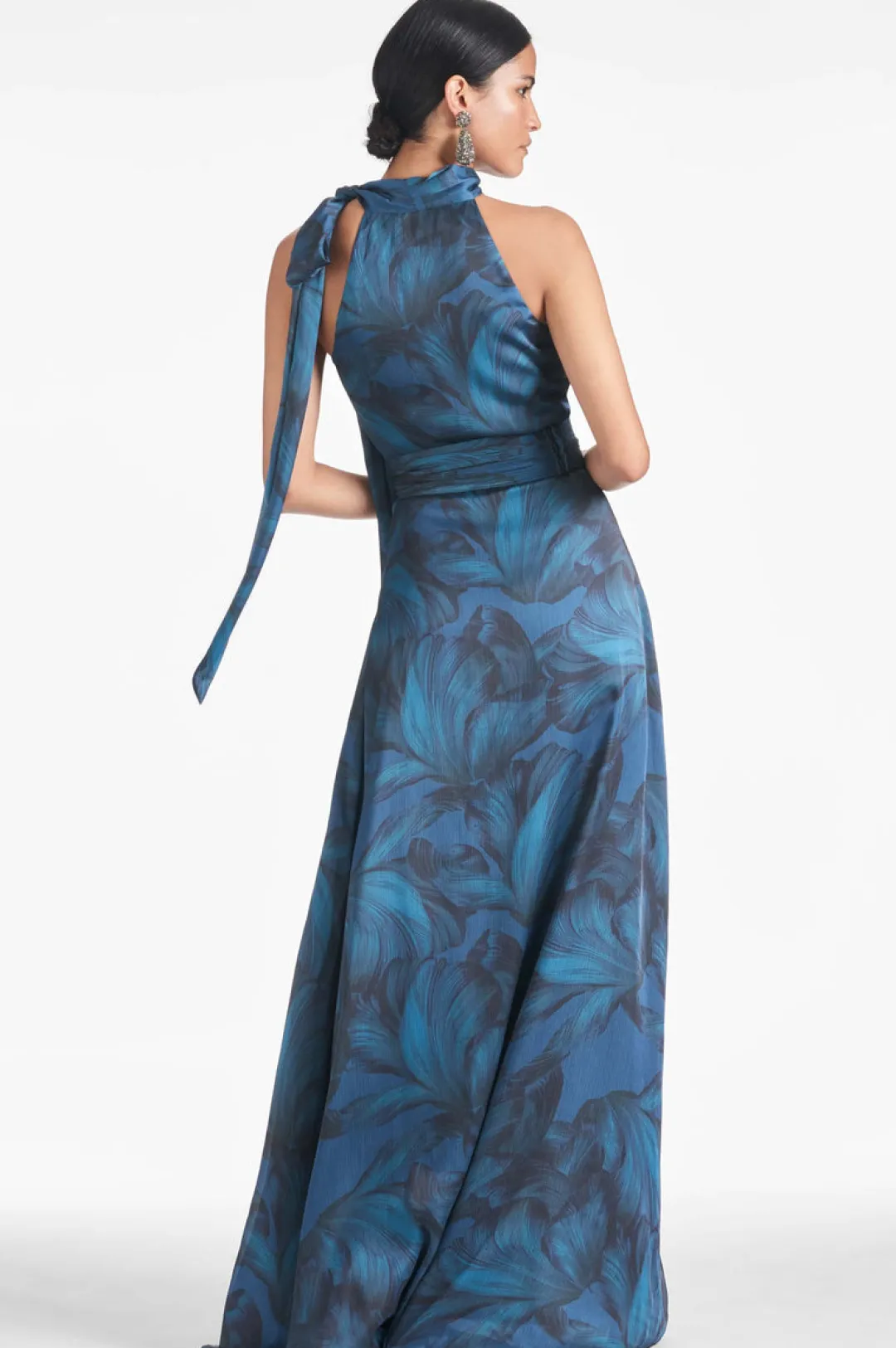 Kayla is an elegant maxi dress with a self-tie at the neckline, the dress speaks to a simple yet romantic elegance. The stitched-on pleated waistband hits at the true waist for the most flattering shape. We design all of our bridesmaid’s dresses with the intention that they can be enjoyed again, we think a beautiful dress should be worn often and well.
