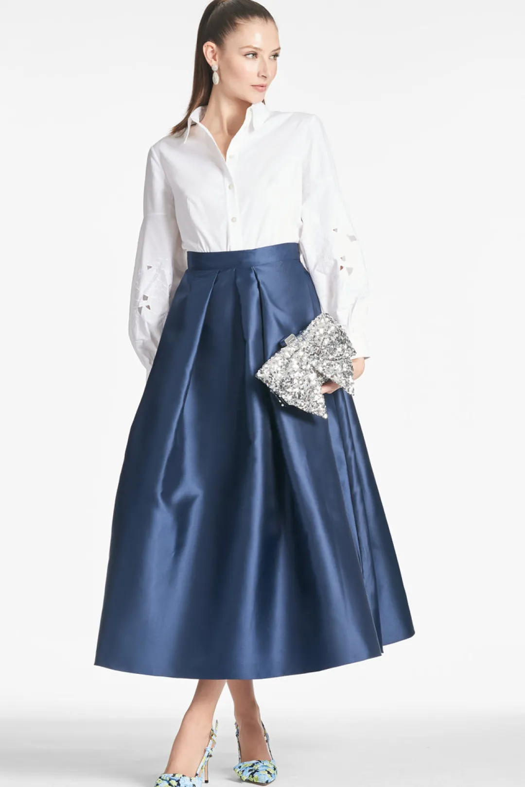 There are few things that are as perennial as the “Party” skirt. The tea-length box pleat event skirt can easily be worn 12 months out of the year. It can be paired with the coordinating lexie top, or as an item it can easily go back to a crisp with a crisp white blouse or black turtleneck.
