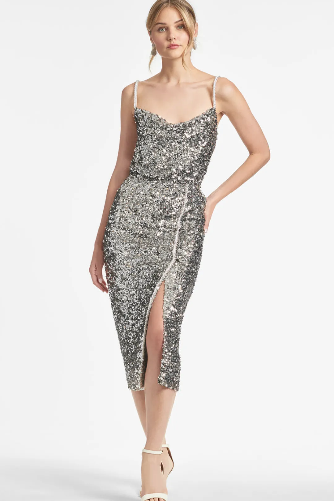 All tanks aren’t created equal… Leta is in our all-over stretch sequin has a cowl neckline and pearl straps making her the perfect pairing to our Talisa skirt. However, a top like this can’t be contained and will beg to be worn back to your favorite denim or chic charmeuse.