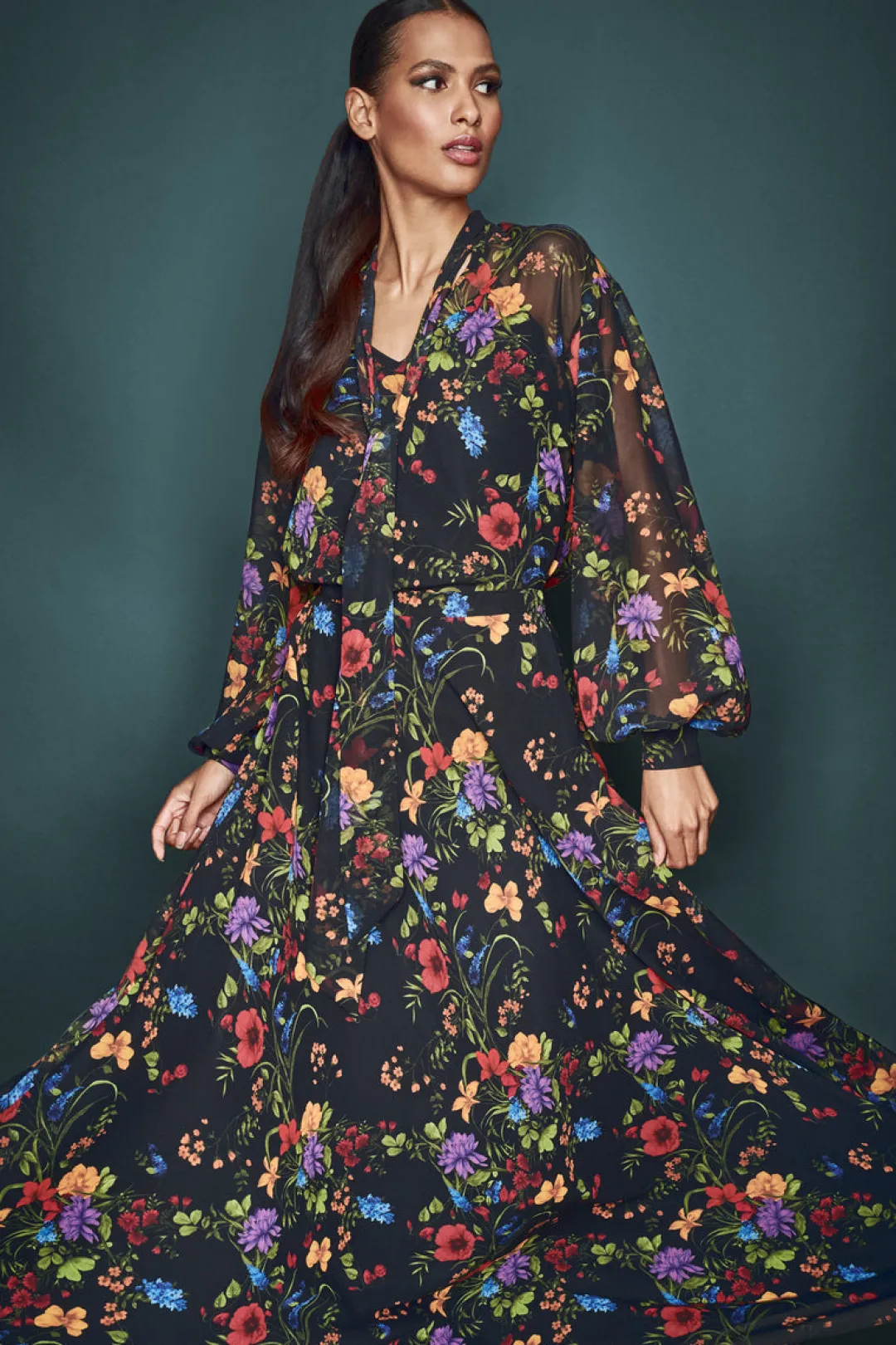 If you’re looking for versatility and wearability, you’ve come to the right place with the Nora top in Noir Wildflower. This printed chiffon blouse is just the right amount of whimsical and practical. Pair her back to the matching skirt or your favorite black trousers for a timeless, sophisticated look.