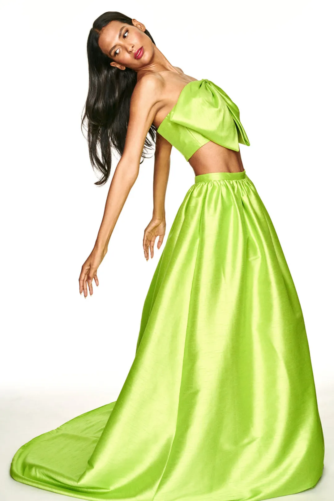 Sydney is the event maxi skirt you’ve been waiting for. She cinches at the waist and drapes beautifully to form an elegant, classic silhouette. Made of luxurious dupioni fabric, this piece is a wardrobe staple. Pair her back to its matching crop top or the white Astor blouse for a more daytime-friendly look.