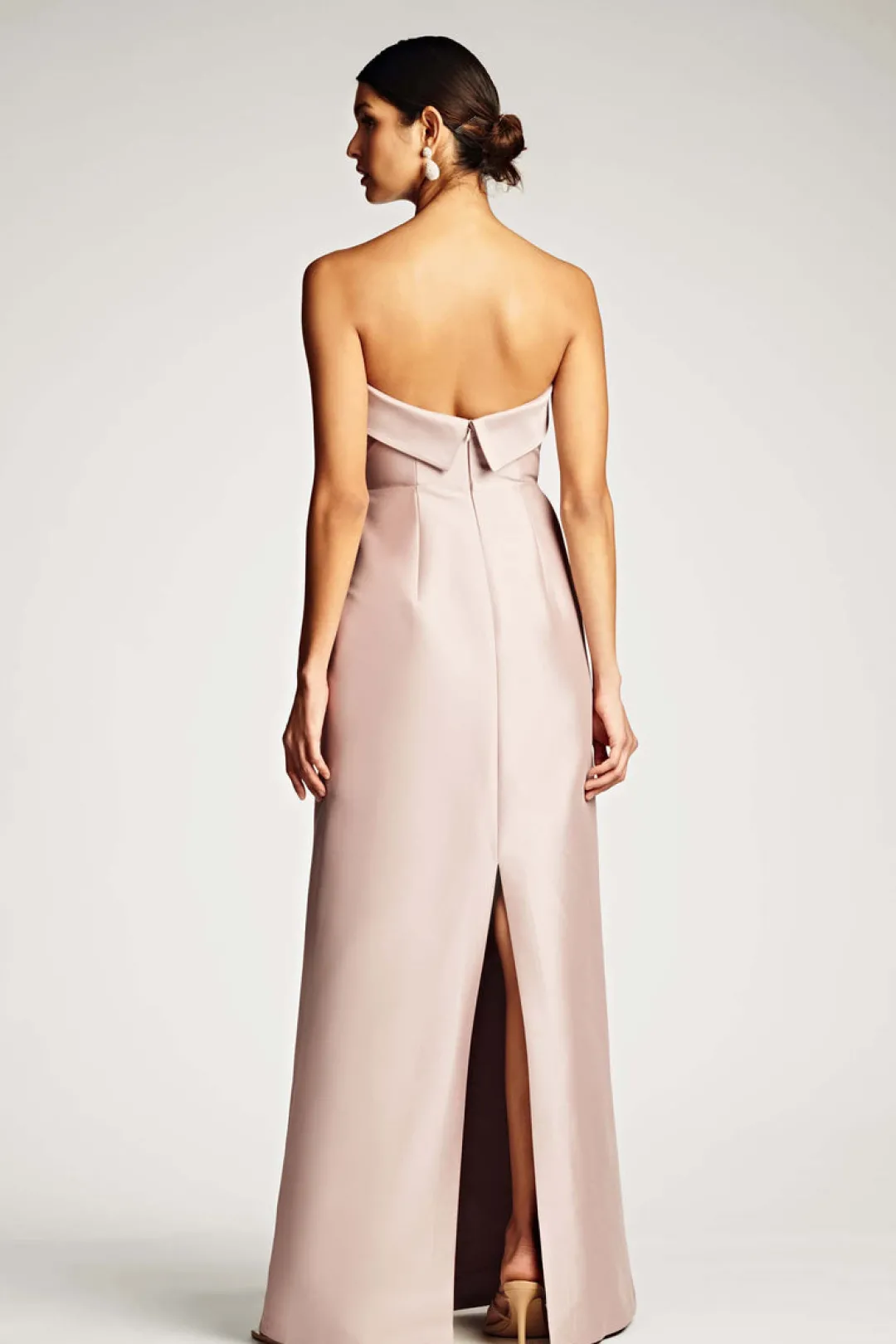 This Tatia Gown is sure to make you feel like royalty. Made from stretch mikado fabric, this gorgeous a-line dress is tailored to flatter with its strapless design and beaded detailing. The perfect complement to your elegant look in our beautiful blush gown.