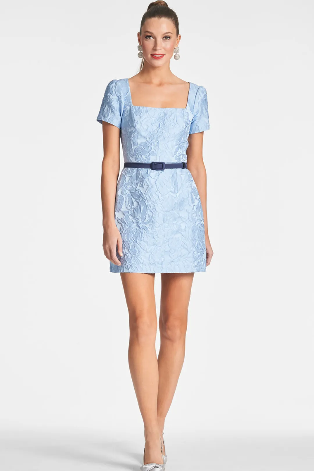 Terri is the perfect something blue, for brides or otherwise. She’s made of jacquard relief and features a scoop neckline with an A-line skirt. She’s flirty, she’s flattering, and she’s the mini you’ll always reach for.